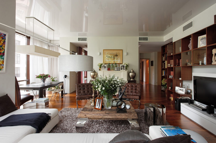Современная гостиная в стиле фьюжн характерна своей уникальностью. Невозможно сделать копию этого стилевого решения.
