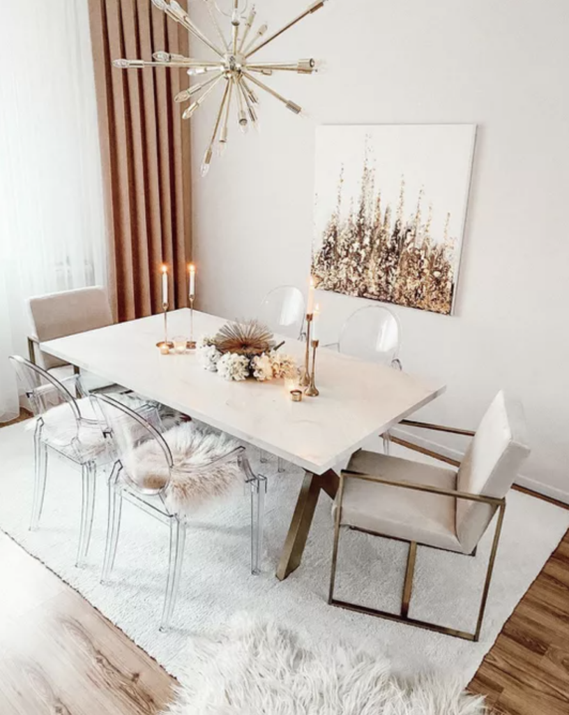Природные элементы, такие как медь, серебро, дерево, камень и золото, элегантны и очень стильно выглядят в интерьере.