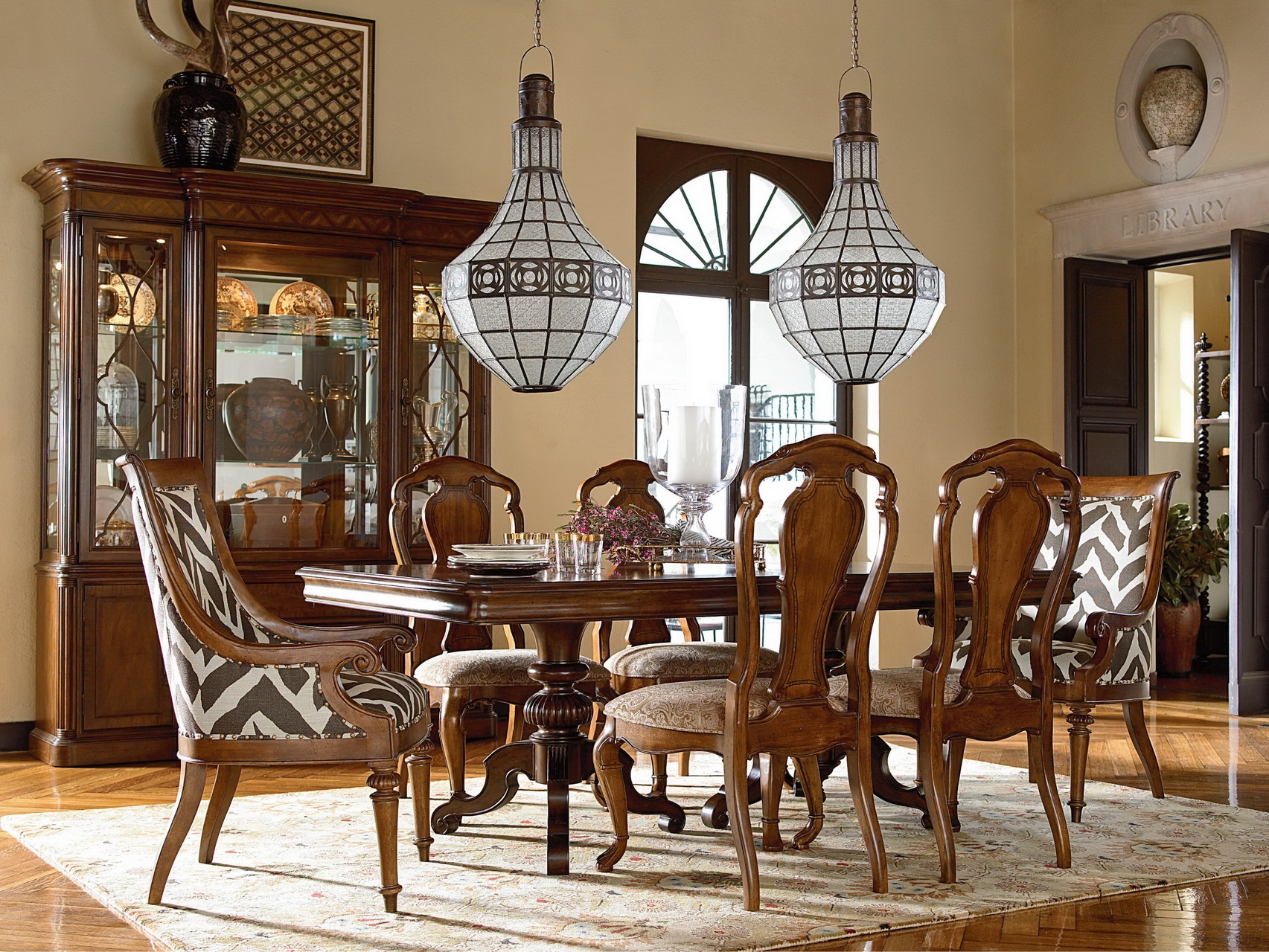 Под обеденным столом можно уютно расположить ковёр с мягким ворсом, а сам стол вынести из рабочей зоны, поместив его в столовой или гостиной. На столе будут уместны наборы скатерти с салфетками, вышитые в тон всей обстановке.