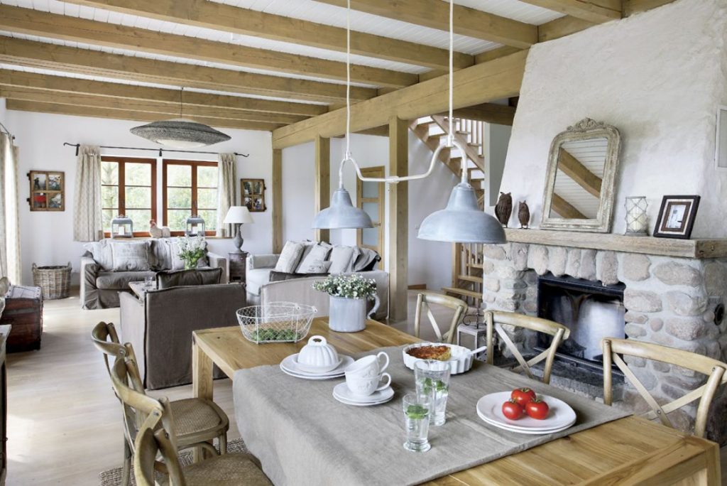 Различные элементы декора распределяют по всему помещению, а состаренного вида аксессуары помогут создать в нем атмосферу обжитости и домашнего уюта.