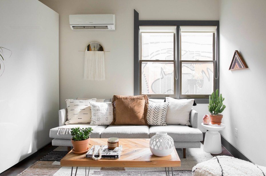 Мебель не ставят впритык к стенам, что визуально сделает помещение больше.