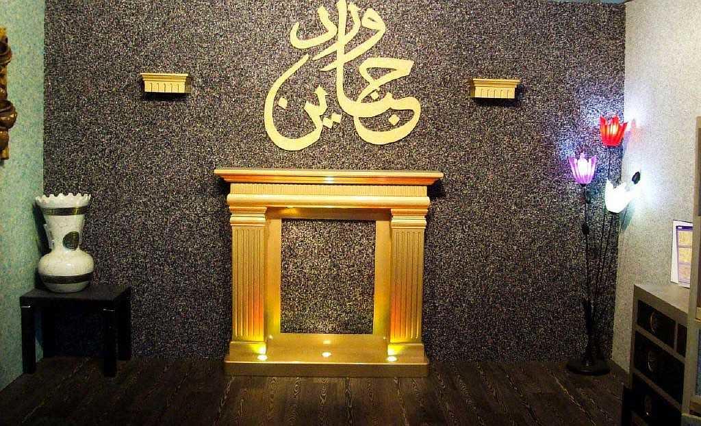 Камин перед бетонной стеной