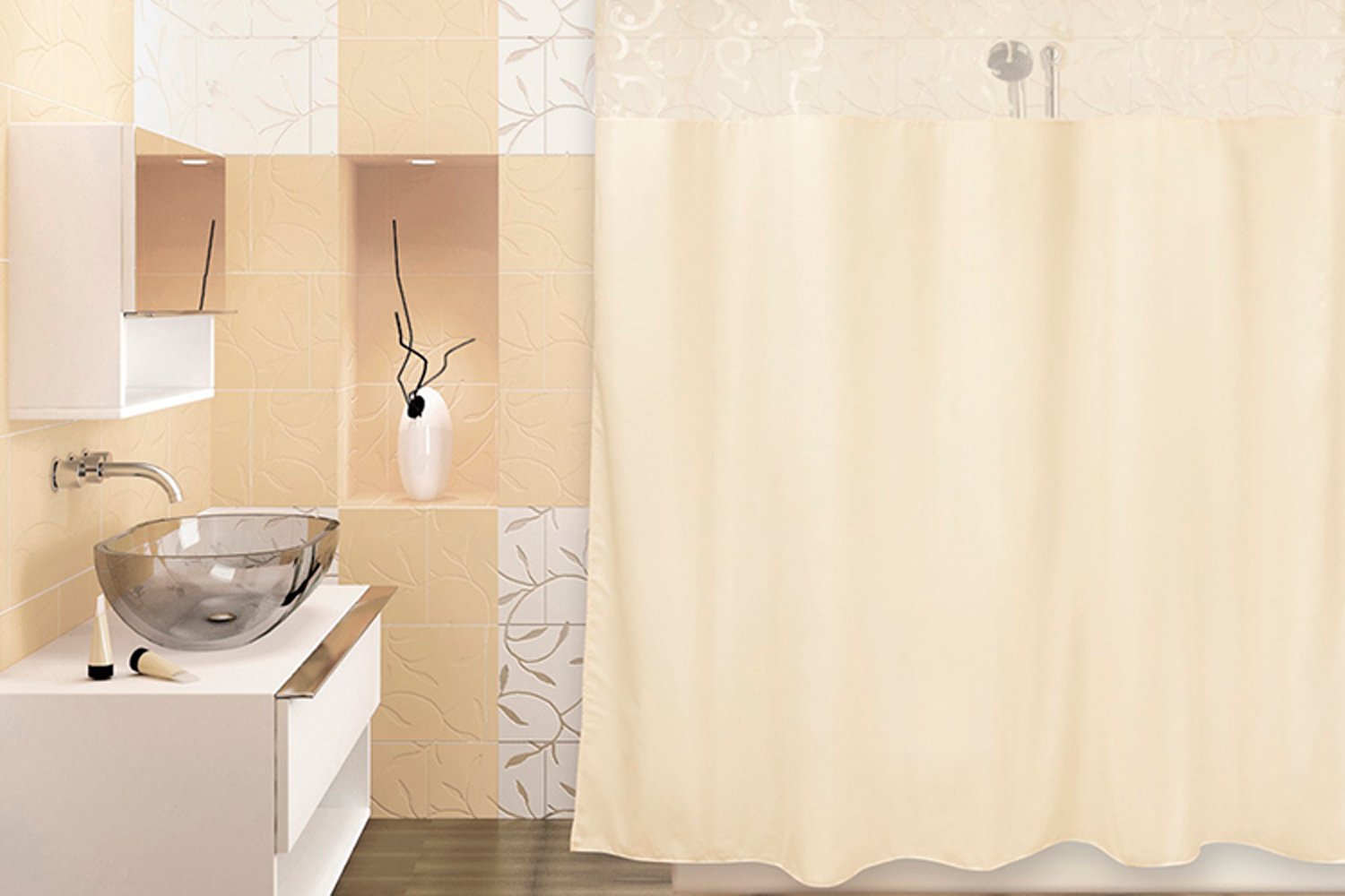 Опасения, что занавесь из ткани быстро придет в негодность, не имеют под собой почвы. Материал имеет специальную пропитку с водоотталкивающими свойствами. Это позволяет создать комфортные условия при проведении водных процедур и сохранить занавеску от постоянного намокания и порчи.