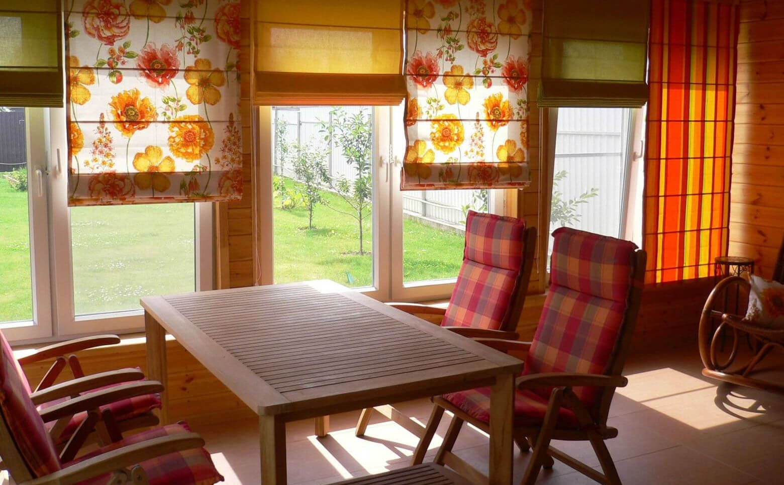 В интернете можно встретить огромное количество фото летних беседок с окнами, украшенными тканью различной тематики. Это добавляет определенный шарм интерьеру беседки. С помощью правильно подобранных дизайнерских решений можно добиться необыкновенно яркого эффекта. Не стоит забывать, что такое оформление нельзя использовать круглый год. Тканевые полотна неспособны защитить конструкцию от осадков и перепадов температур в холодное время года.