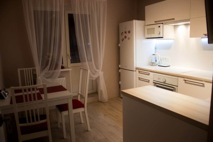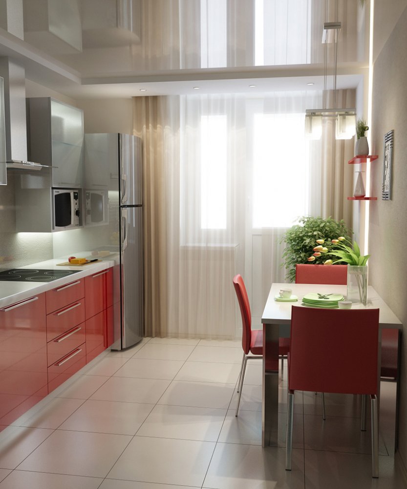- Во-первых, освещенность такой кухни будет меньше, т.к. свет проходит через балконное помещение или лоджию.