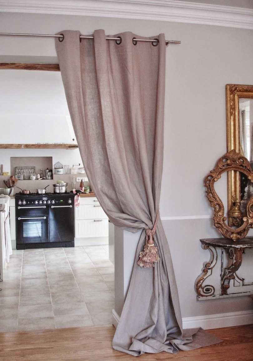 Дверные проемы без дверей – не временное решение до следующей зарплаты. Чаще всего это осознанное оформление интерьера с целью расширить помещение или создать нечеткую, условную визуальную границу. В таком случае шторы необходимы, чтобы придать завершенность интерьеру помещения или расставить акценты. Занавески могут отделять: