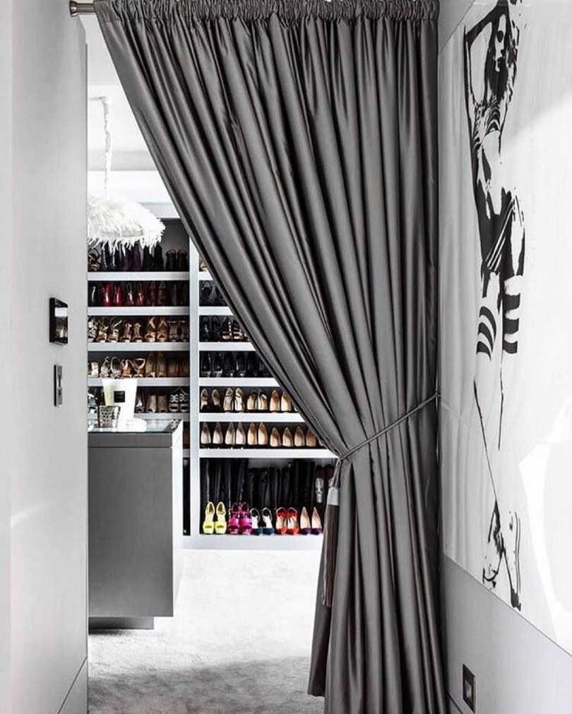 Если повесить шторы на дверной проем из той же ткани, что и портьеры на окнах, помещение приобретёт очень гармоничный вид. Плюс таких изделий заключается в том, что они полностью маскируют дверную раму, просты в уходе и долговечны. Чаще всего используются для оформления помещений в стилях романский, ампир, классицизм, барокко, рококо.