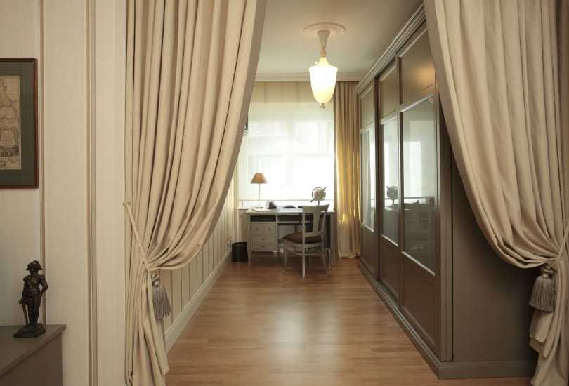 - Разделение жилой площади на отдельные функциональные зоны с помощью легких преград в виде штор;