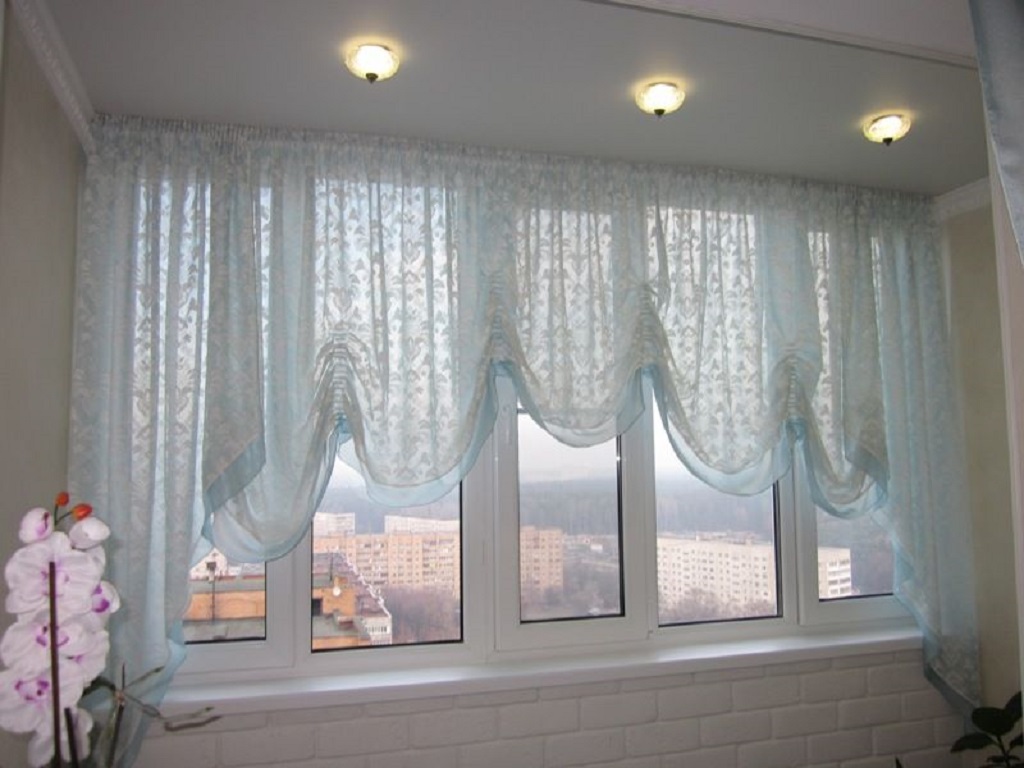 Выбирая их для весьма просторной лоджии можно проявить всю свою фантазию и выбрать более сложные, многослойные и великолепные изделия, которые могут быть декорированы ламбрекенами