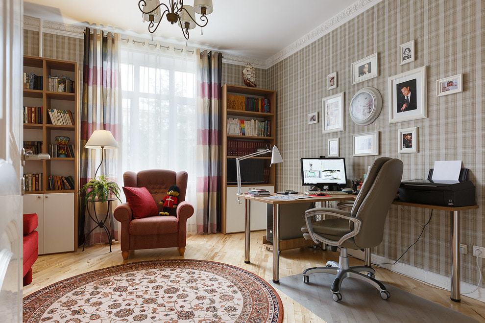 Оконные драпировки, сочетающиеся по цвету с гипсокартонной или деревянной перегородкой, придают строгости и делают границы комнаты более осязаемыми. А когда есть четкое зонирование, есть и понимание, как сделать выделенное пространство более комфортным и удобным.