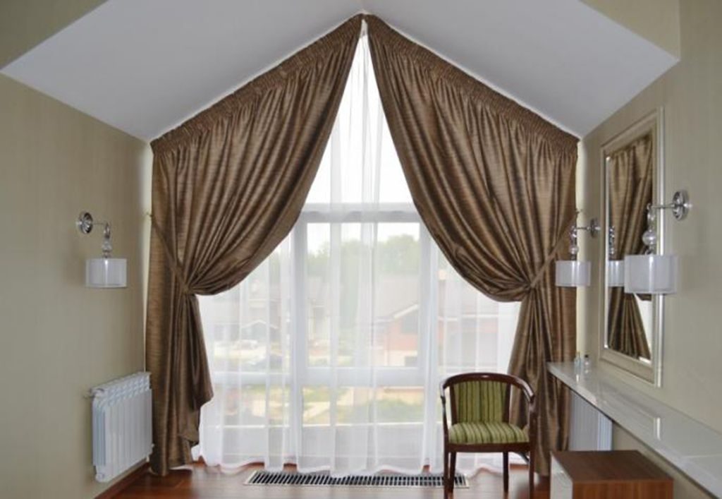Фото и примеры штор на треугольные окна