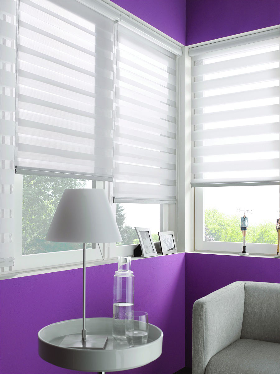 Рулонные шторы День-ночь эффективно защищают от нагрева интерьера и чрезмерного солнечного света. Они обеспечивают интимную атмосферу и эффективно препятствуют проникновению солнечного света, который может отражаться на компьютерных мониторах и других экранах. Занавески гарантируют высокий комфорт и отличаются оригинальной эстетикой. Доступные во многих цветах варианты, идеально подходят для домашнего офиса и других помещений. Оригинальный дизайн позволяет использовать рулонные шторы День-ночь в интерьере гостиной, спальни и детской комнаты. Данные жалюзи эффективно закрывают интерьер комнаты от посторонних глаз с улицы, поэтому вы можете легко установить шторы День-ночь и в ванных комнатах. Современный внешний вид сам по себе является идеальным украшением для окна, которое больше не нуждается в дополнительном декорировании в виде штор и гардин.