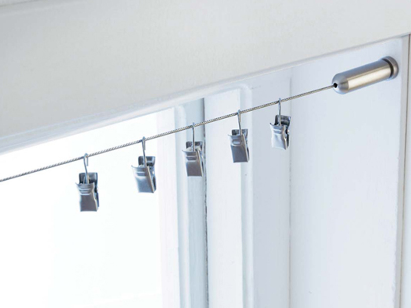 Возможность организации дополнительного пространства и улучшение внешнего вида – две задачи, с которыми успешно справляется правильно повешенная основа из лески и крепежей. Цвет изделия должен гармонировать с преобладающим стилистическим решением в помещении. В этом случае карниз-струна не изуродует окно висячими садами Семирамиды.