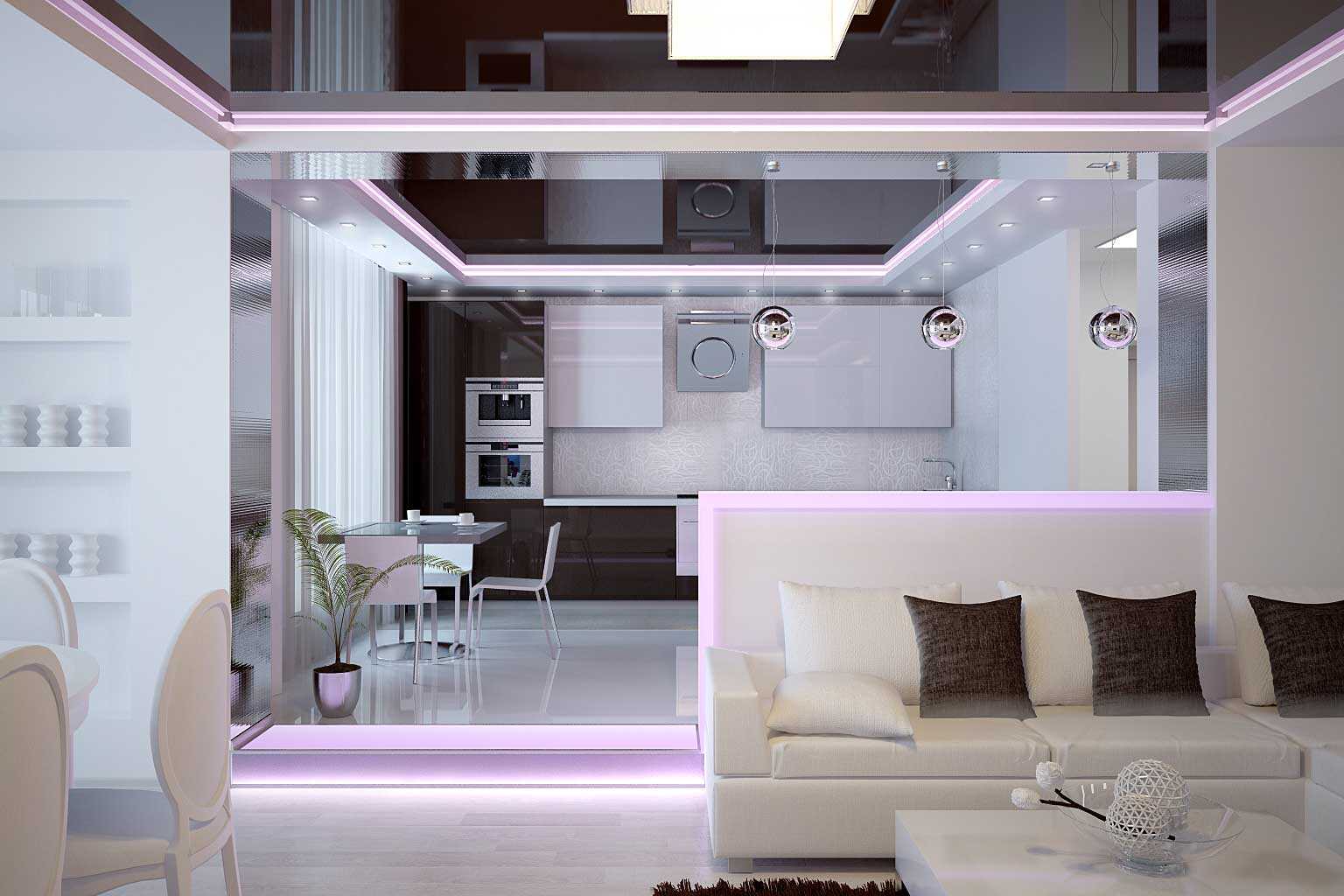 Выделять контуры мебели, стен, потолков, декоративных элементов. Лента, расположенная снизу мебели, создаст эффект воздушности, зрительно расширит пространство.