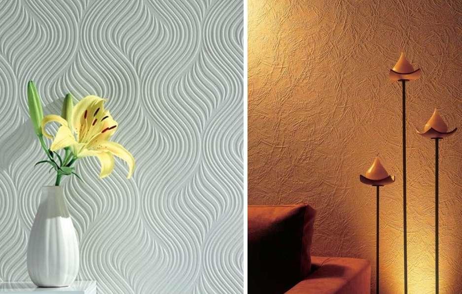 Сегодня на прилавках магазинов можно встретить следующие виды фактурных обоев: виниловые, преимущество которых заключается в возможности влажной очистки- флизелиновые, для которых характерна износостойкость и упругость- стекловолокнистые, способные маскировать неровности на стенах- бумажные- жидкие.