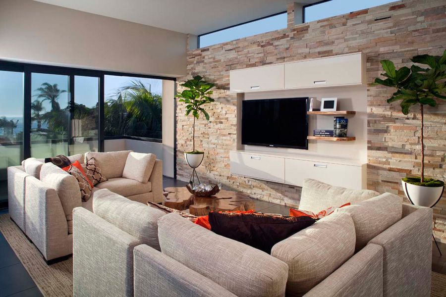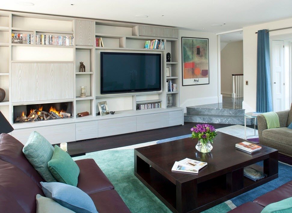 Это ваш лучший вариант, поскольку вы можете персонализировать зону в соответствии с точными потребностями и предпочтениями. В такой гостиной будет очень интересный настенный блок с обозначенной зоной для настенного телевизора и красивой областью под дисплеем.