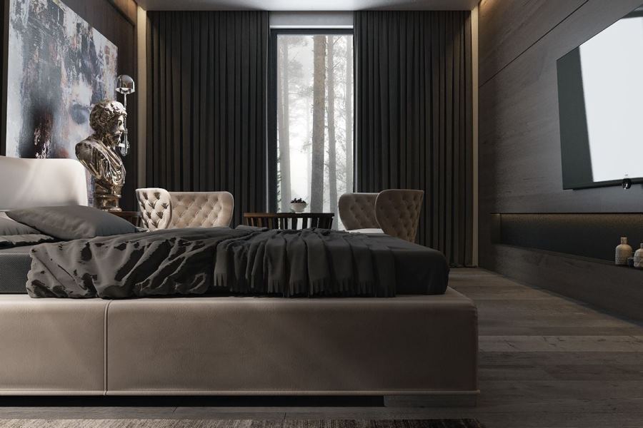 Удачные интерьерные стили для спален с темной отделкой и наполнением: