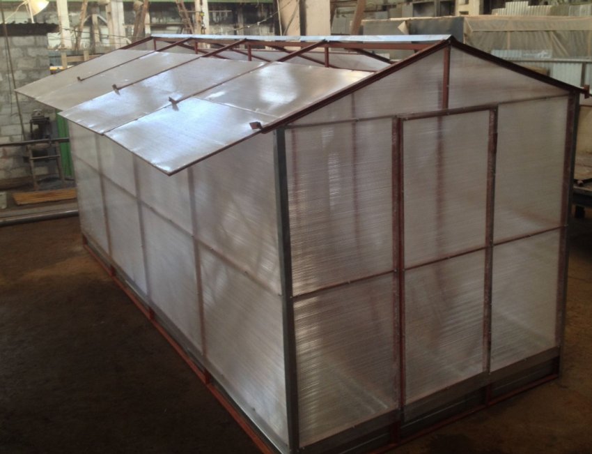 Установленный каркас покрывается либо рулонным пленочным материалом, либо листами поликарбоната.