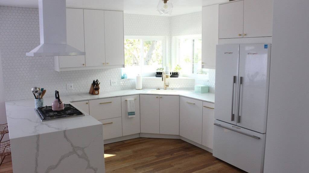 С любой кухней, сделанной под заказ, такое не сработает, ведь она сделана единым целым. Чуть сложнее сделать из линейной кухни угловую — придется докупить недостающие блоки.