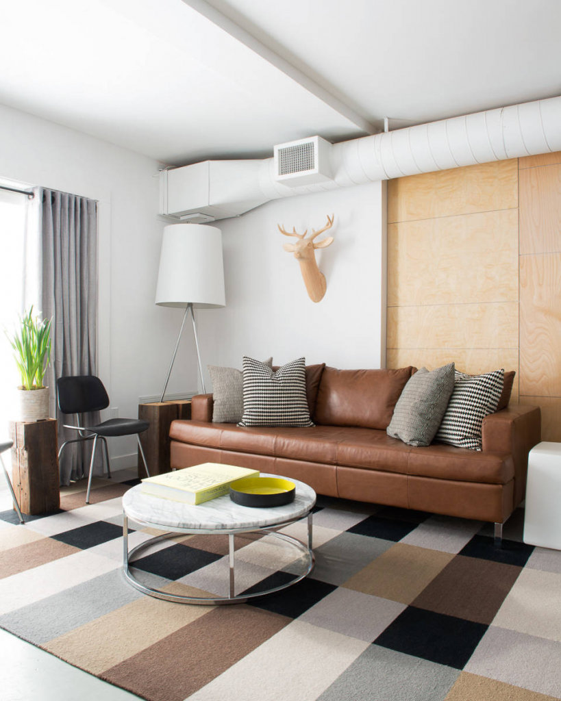 Если распределяете нагрузку по зонам, то используйте диван в качестве естественной перегородки. Все просто: он размещается своей задней стороной параллельно барной стойке либо обеденному столу.