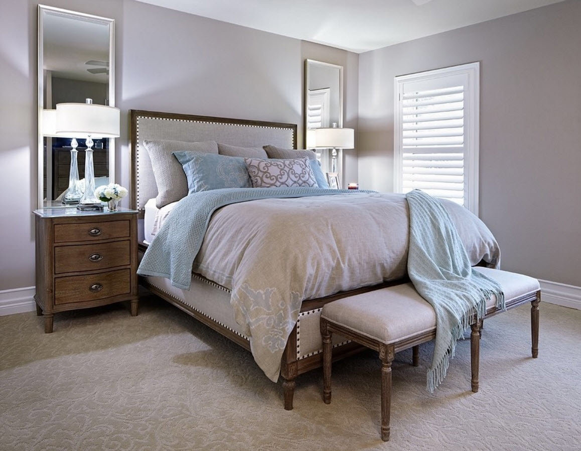 Такой вариант дизайна можно назвать традиционным, с ним достаточно легко работать даже новичкам. Это безопасный способ оформления интерьера, который поможет создать гармоничную спальню.