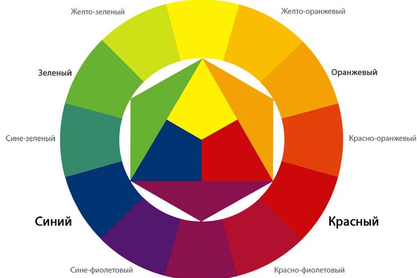 - наиболее сочетаемые оттенки располагаются друг напротив друга;