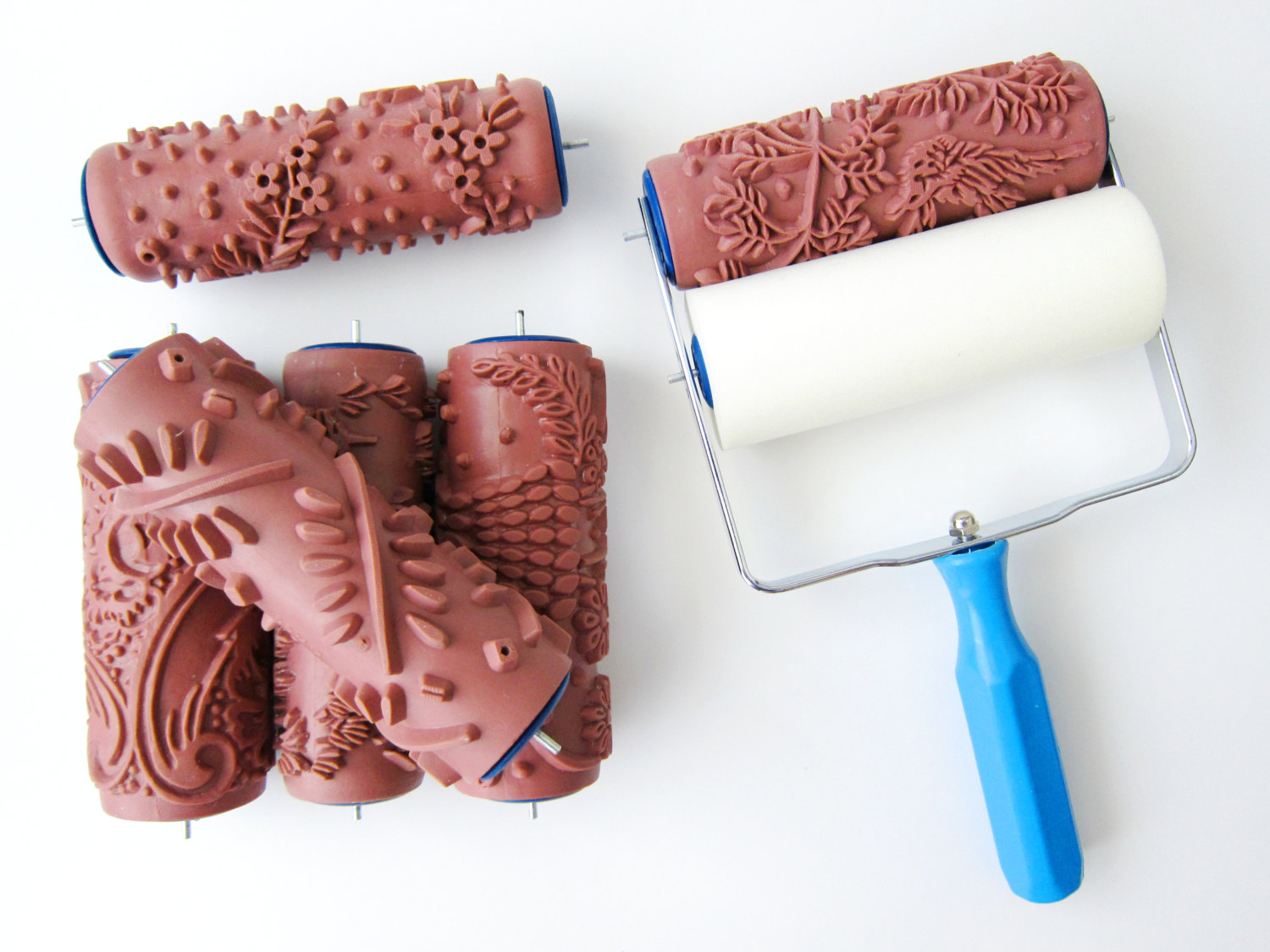 Долговечными считаются резиновые ролики. С помощью канцелярского ножа на рабочей поверхности вырезается узор, предварительно изображенный на листе бумаги. Недостаток данного метода — для выполнения сложного рисунка нужны навыки. Также заготовку с рельефным рисунком можно приклеить к инструменту.