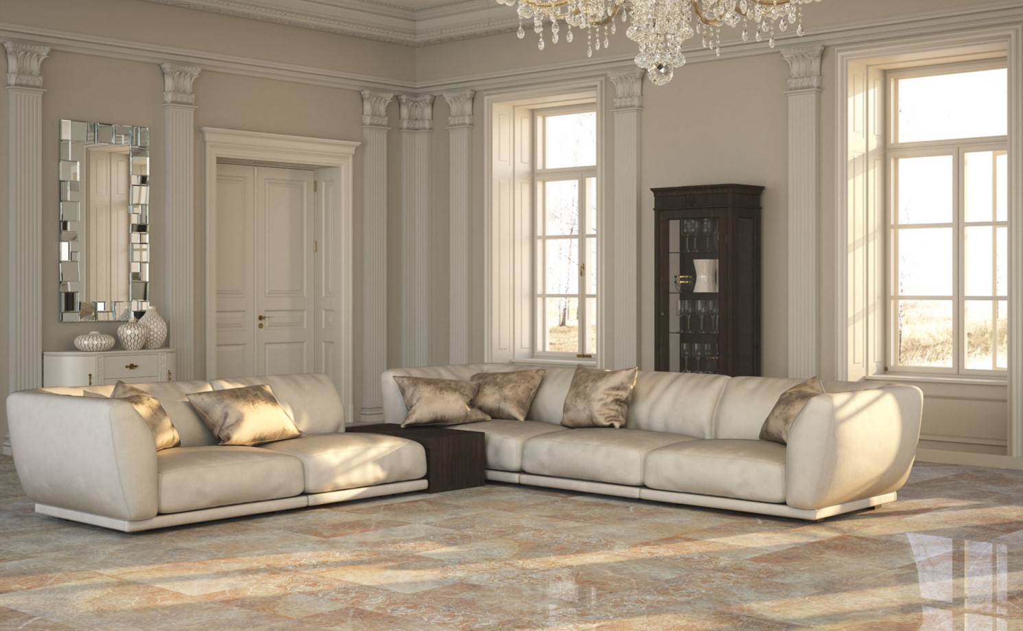 Особенно гармонично мрамор смотрится в гостиных. В таких помещениях он является базовым фоном.