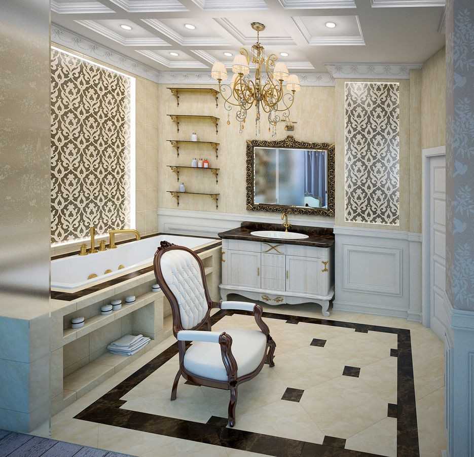 Дизайн ванной комнаты классика имеет характерные черты, которе выделяют её на фоне других.