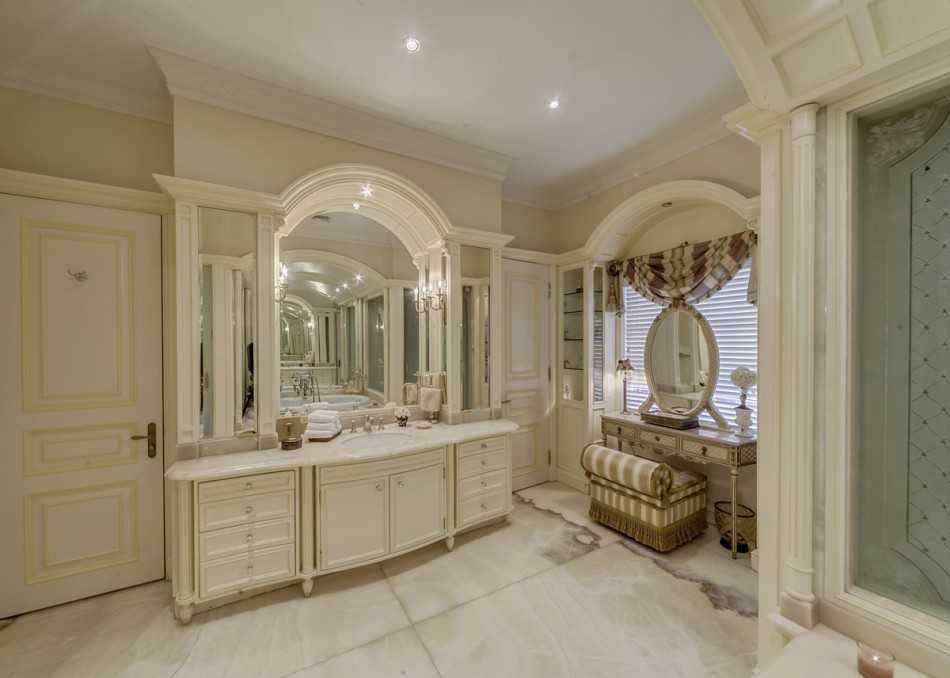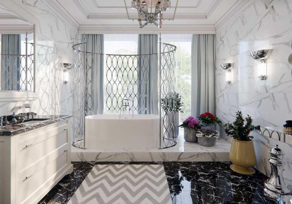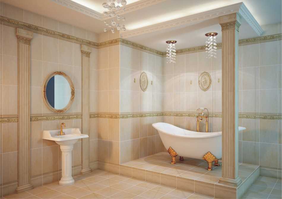Отделка поверхностей: лепнина и плитка для ванной классического стиля
