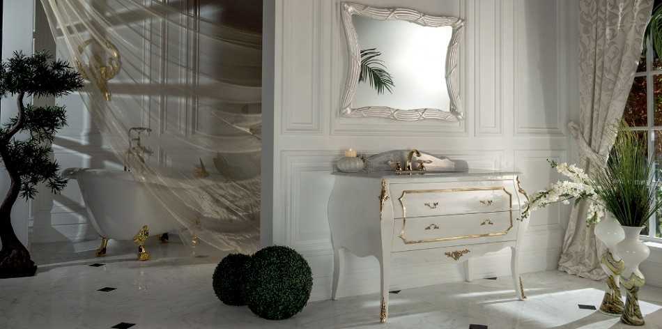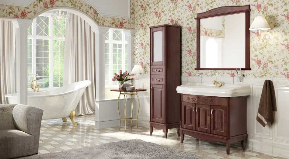 Помимо этих особенностей, мебель для ванной комнаты классика состоит из натурального массива дерева. Здесь присутствует дорогая фурнитура и элементы декора.