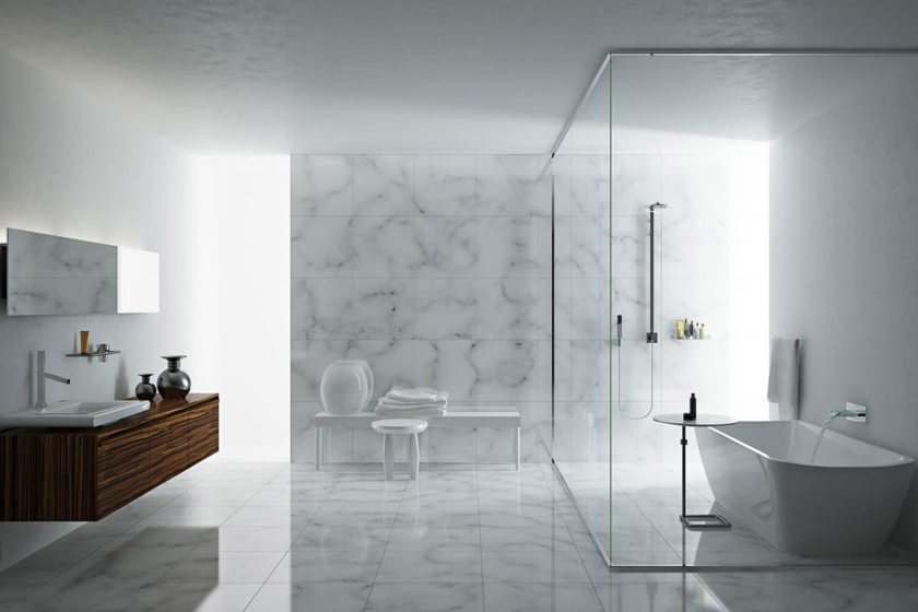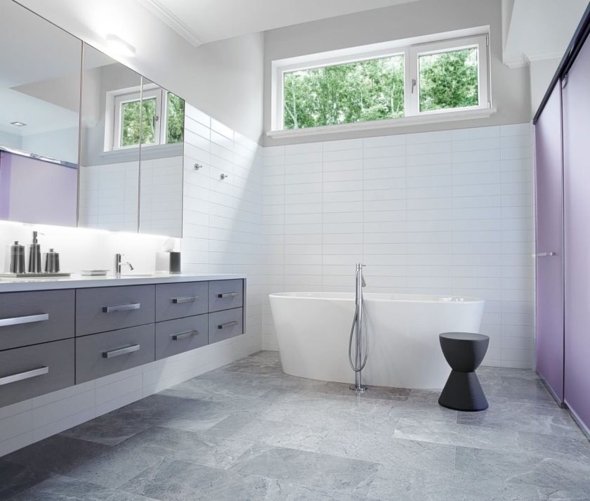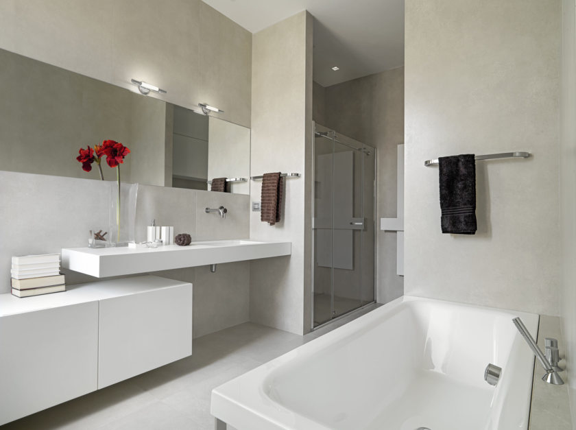 Ванная в стиле минимализм будет уместна в небольших помещениях, где правильное зонирование пространства играет большую роль.