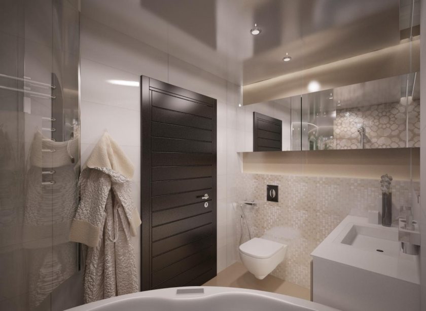 Бежевая ванная комната с люстрой Источник planirovkainfo.ru