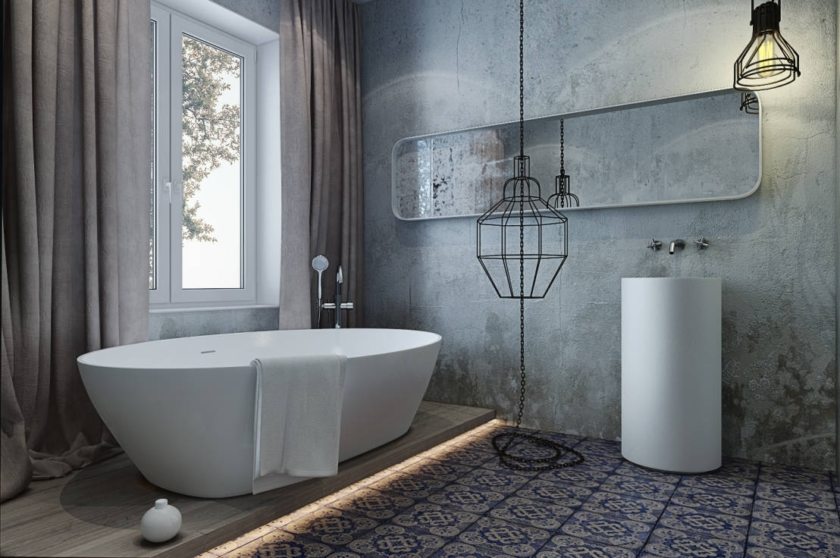Данный дизайн предполагает минимальное количество предметом и деталей. Если Вы хотите оформить интерьер ванной минимализмом, то он будет выглядеть эффектно и современно.