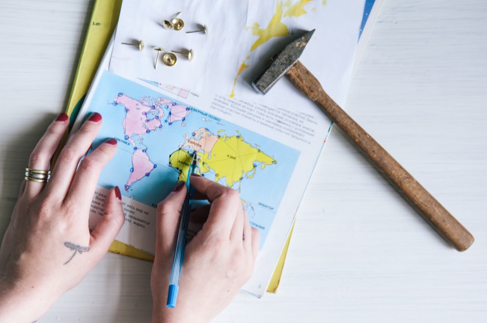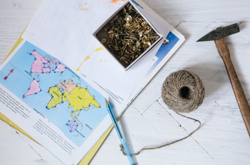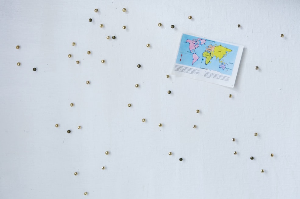 На карте мира делаем схематические пометки, где будут располагаться гвоздики.