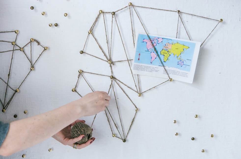 В последнее время особенно популярными стали визуализации. Это могут быть мечты и цели или же любимые моменты из отпуска в виде фотографий. Для их оформления предлагаем создать настенное панно в виде карты мира.