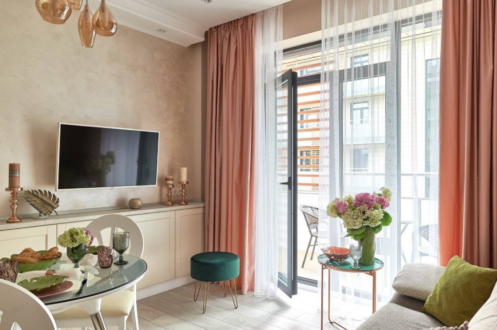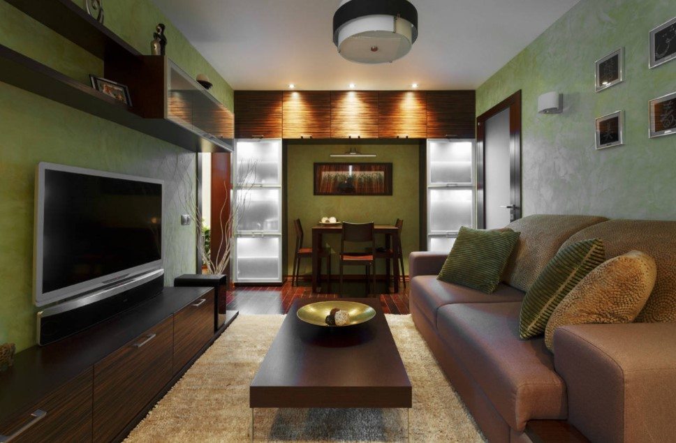 - в маленьком помещении желательно заменять значительный по размеру стол раскладным столиком или журнальной конструкцией.
