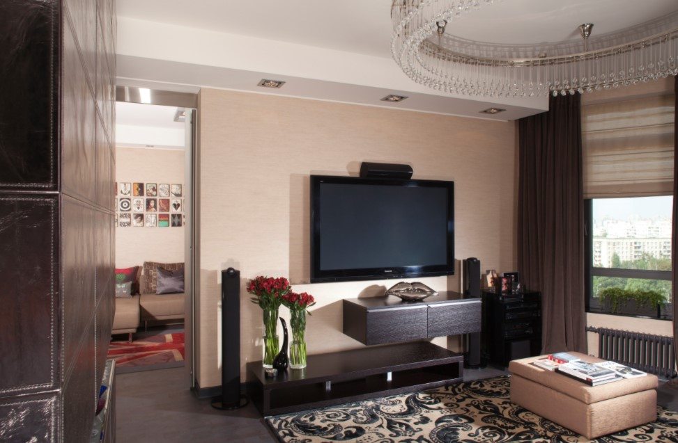 - между диваном и телевизором оставляется оптимальное расстояние;