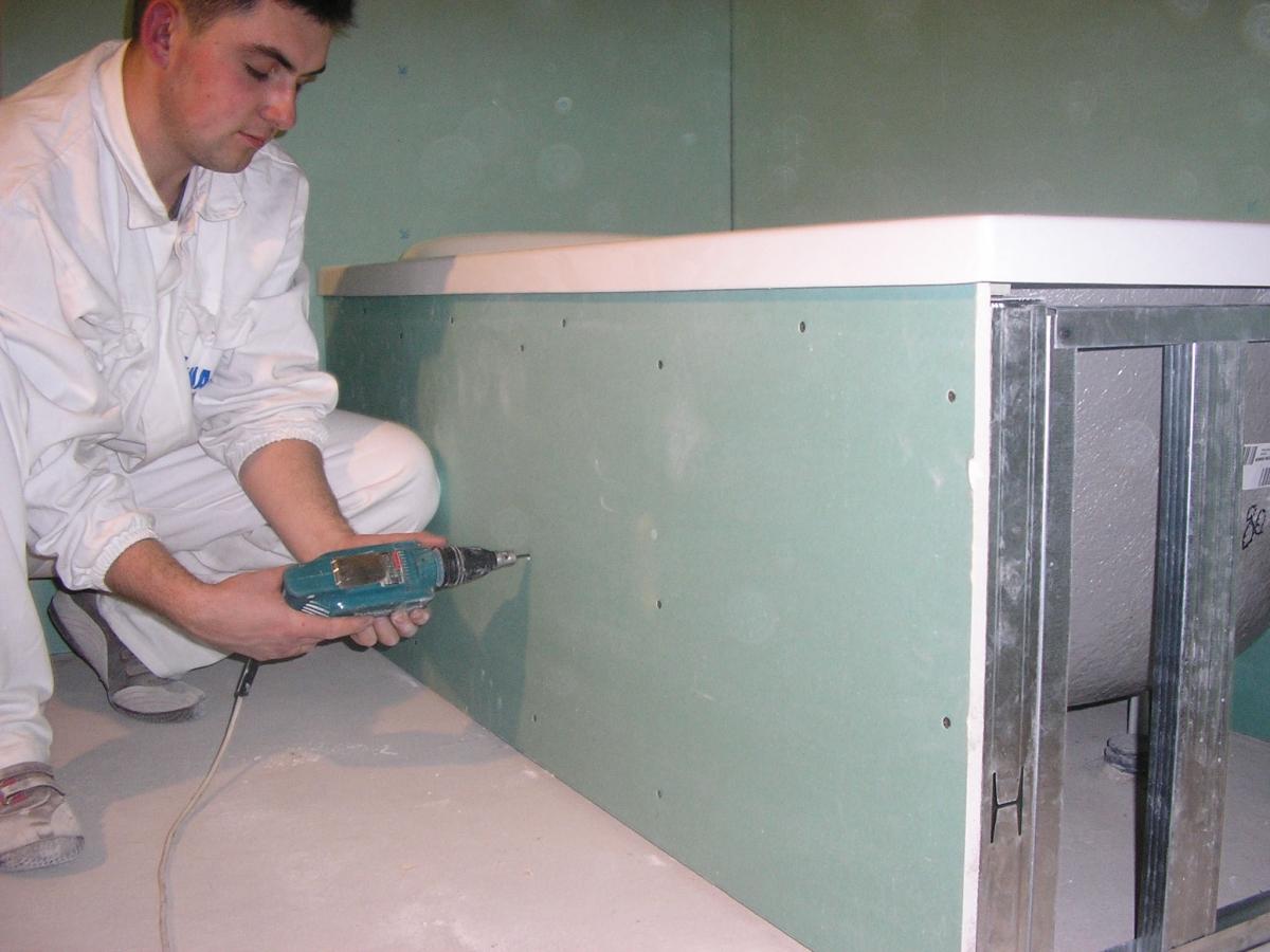 - некоторые из гипсокартона изготавливают экран для ванной;