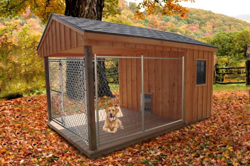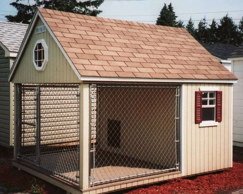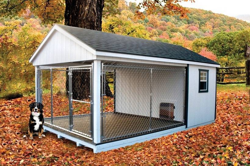 - Площадь загона должна превышать 10 м2. Крупные собаки любят простор.