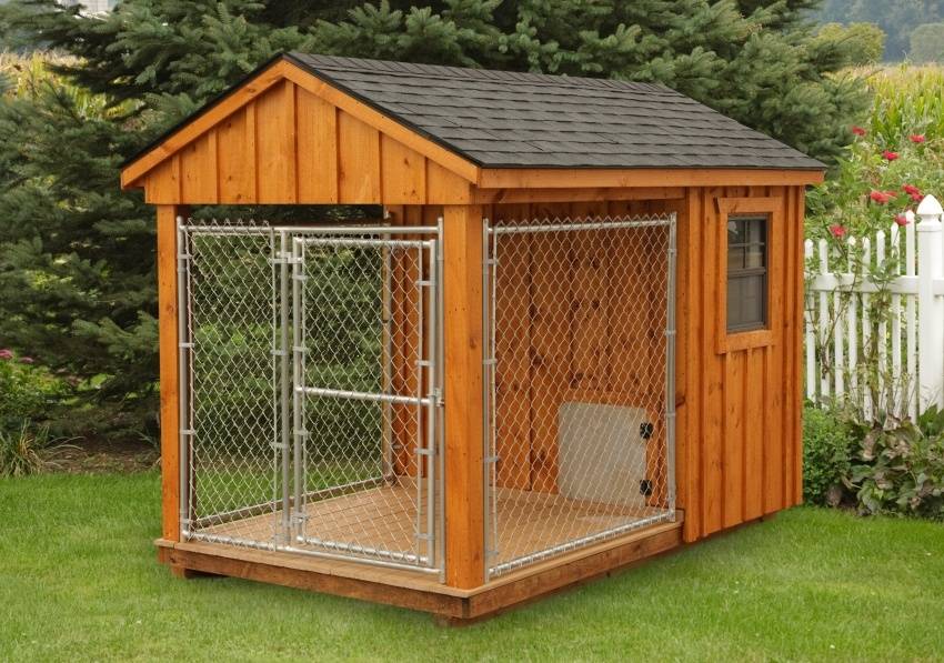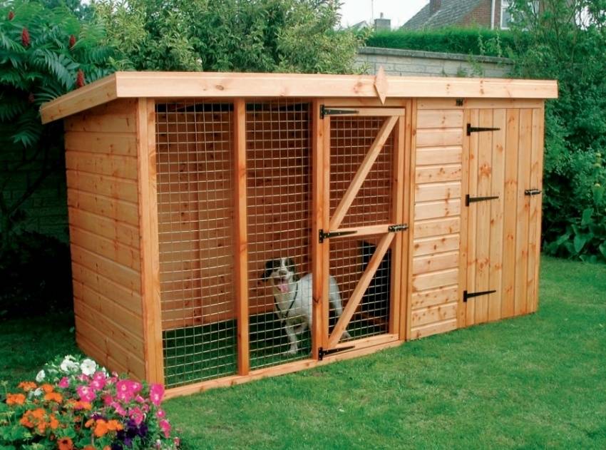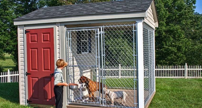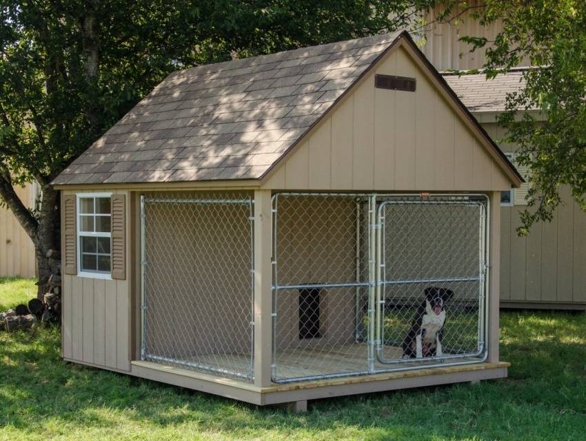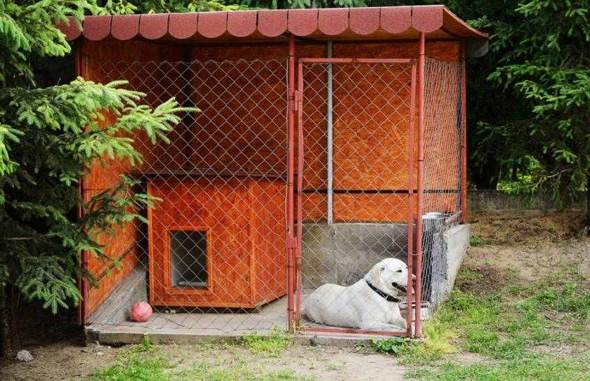 Отдельно стоит отметить, что вольер предусматривает наличие спального места для собаки, которое защищено от ветра, дождя и холода. Для этого можно использовать будку, но если она является частью вольера, то строить ее не нужно.