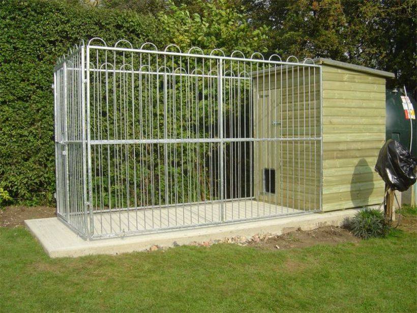 - Оптимальный размер загона равен 3х3 м, возможны другие модели, в зависимости от длины пса.