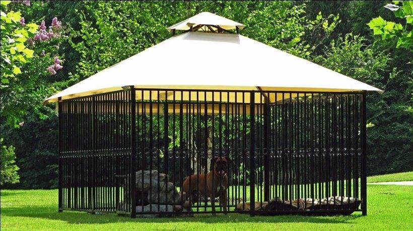 Особое внимание стоит уделить размещению вольера. Конечно же, не надо его устанавливать рядом с забором и другими источниками шума. Все это будет отвлекать собаку и мешать хорошему, качественному сну