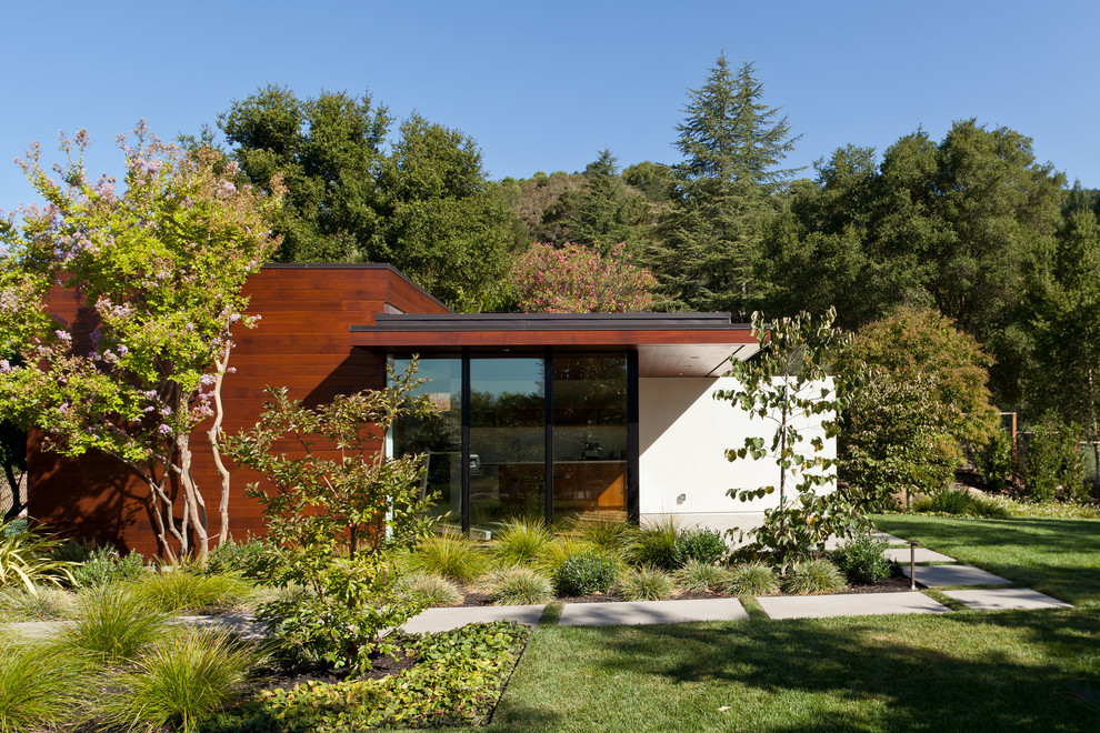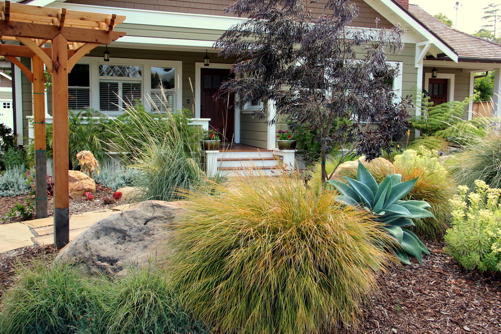 - стиль идеально подойдет для рельефных участков. Если же природных холмов нет, то необходимо будет создать стенки, лестницы и террасированные склоны. Зонировать территорию можно с помощью живых изгородей, а южную часть участка выделить под патио;
