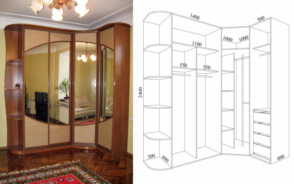 Виды угловых шкафов купе