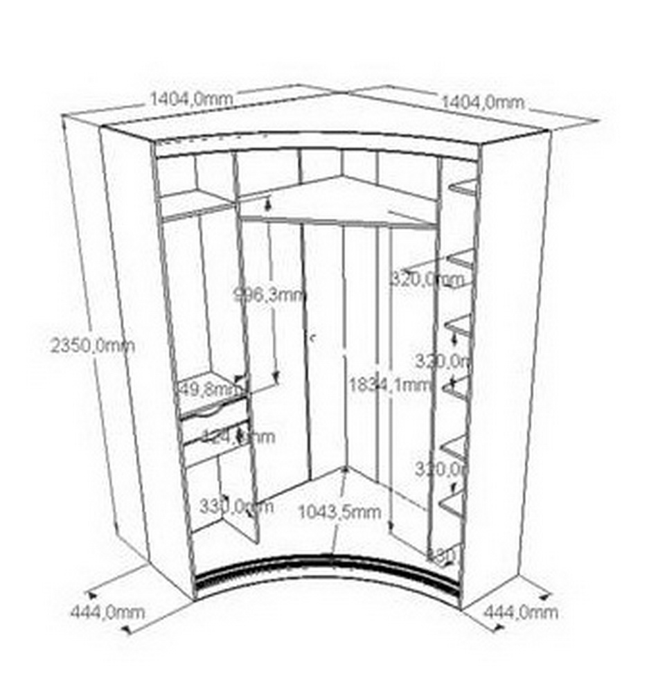 Проще всего обычно определиться с высотой — под самый потолок или на пару сантиметров ниже. Все другие параметры зависят от помещения, в которое вы планируете установить угловой шкаф купе и имеющегося в наличии места. Наверное, можно сказать о минимальных размерах: