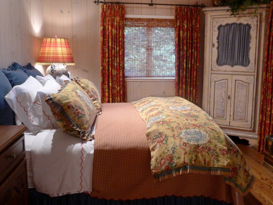 - Кантри, прованс и другие деревенские стили. Необходима простая, даже грубоватая корпусная мебель светлых древесных тонов. Превосходно будет смотреться винтажный шифоньер, искусственно состаренный шкаф с резьбой.