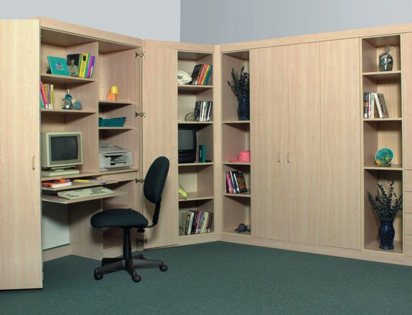 Разнообразие вариантов угловых шкафов разрешает проблему меблировки маленьких помещений и позволяет визуально скорректировать размеры комнаты. Принято выделять следующие модели: