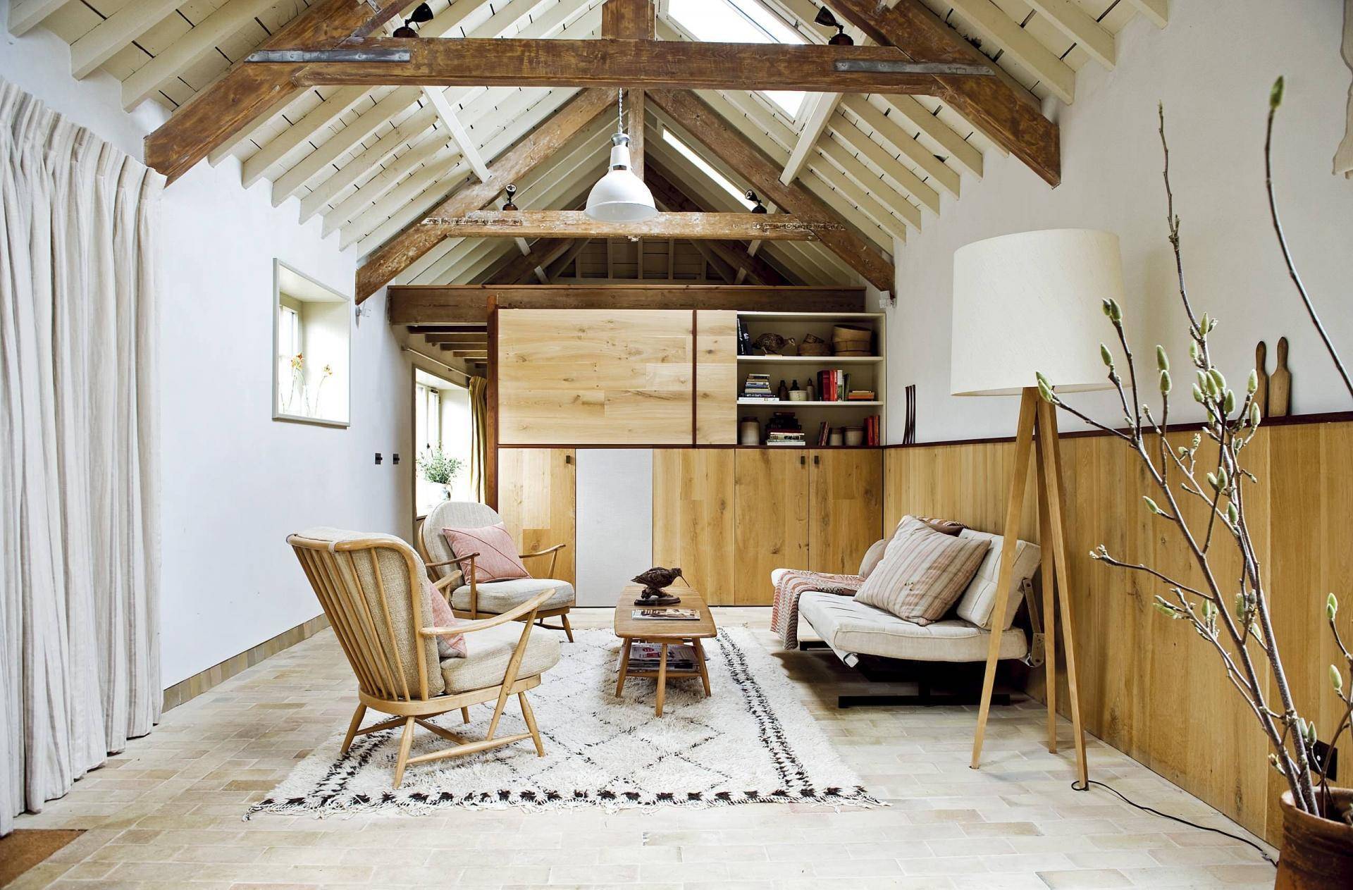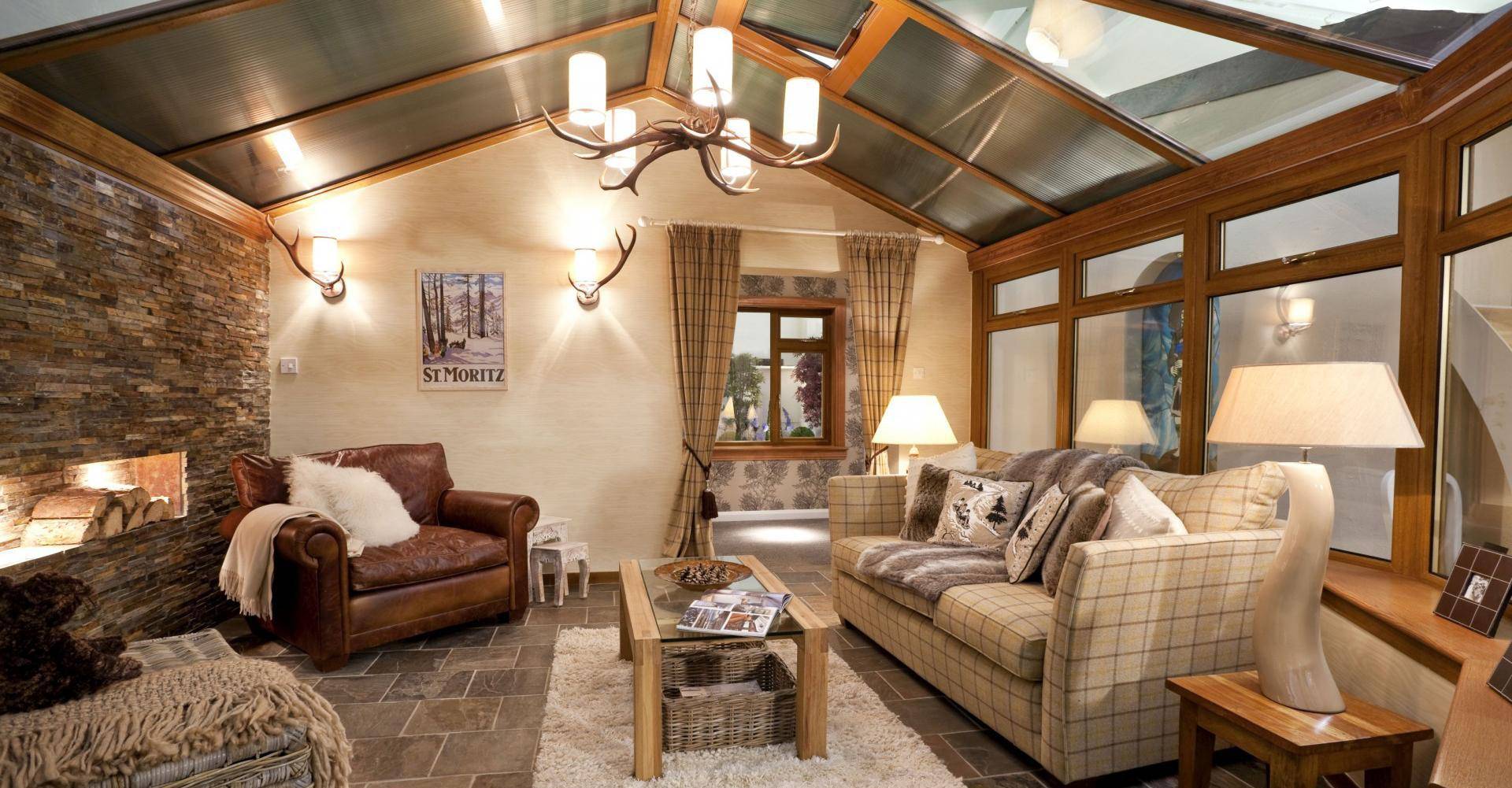 Особенно хорошо смотрится гостиная в классических стилях — шале, прованс, английский.