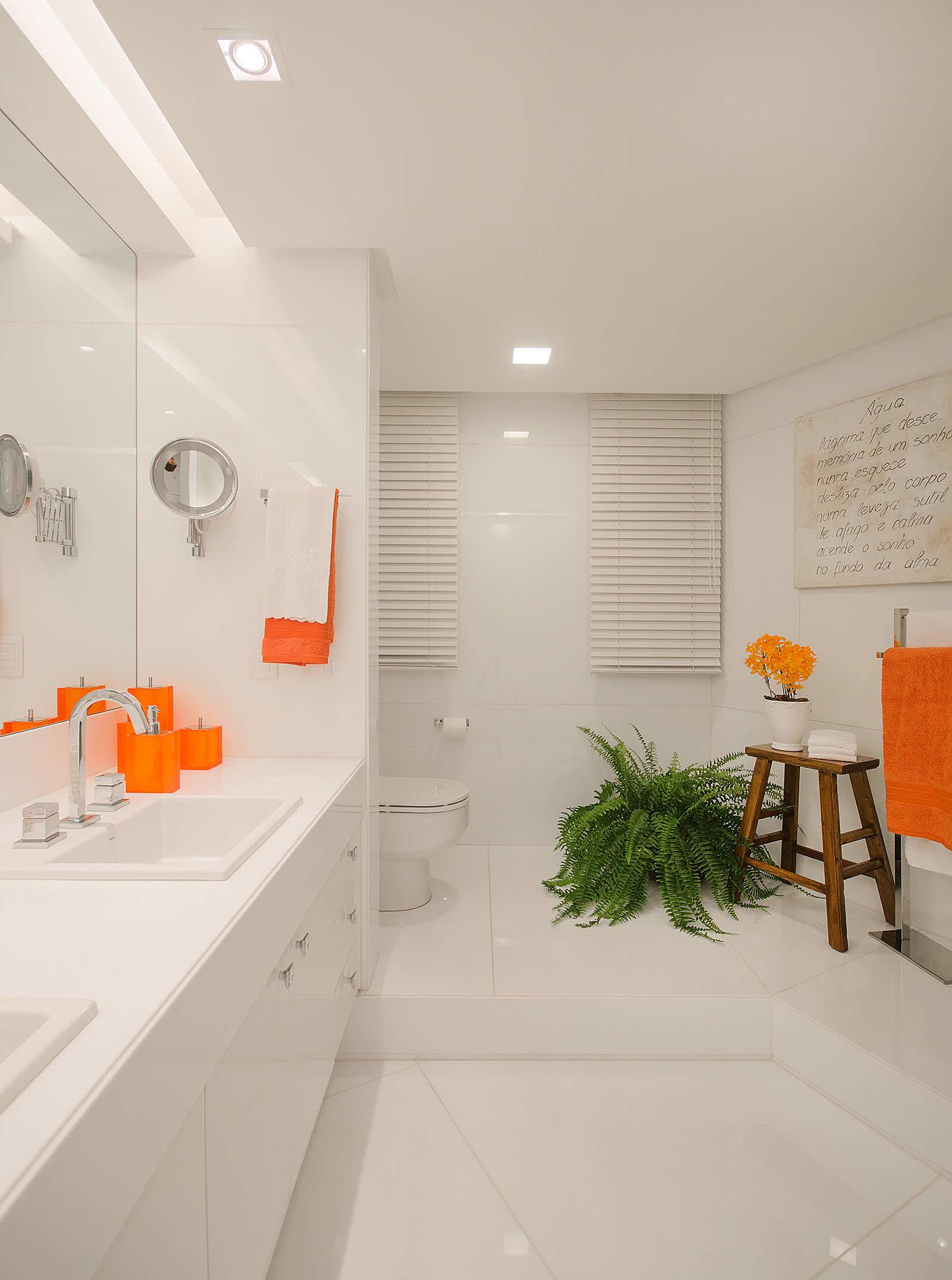 Белая двухуровневая ванная с оранжевыми акцентами